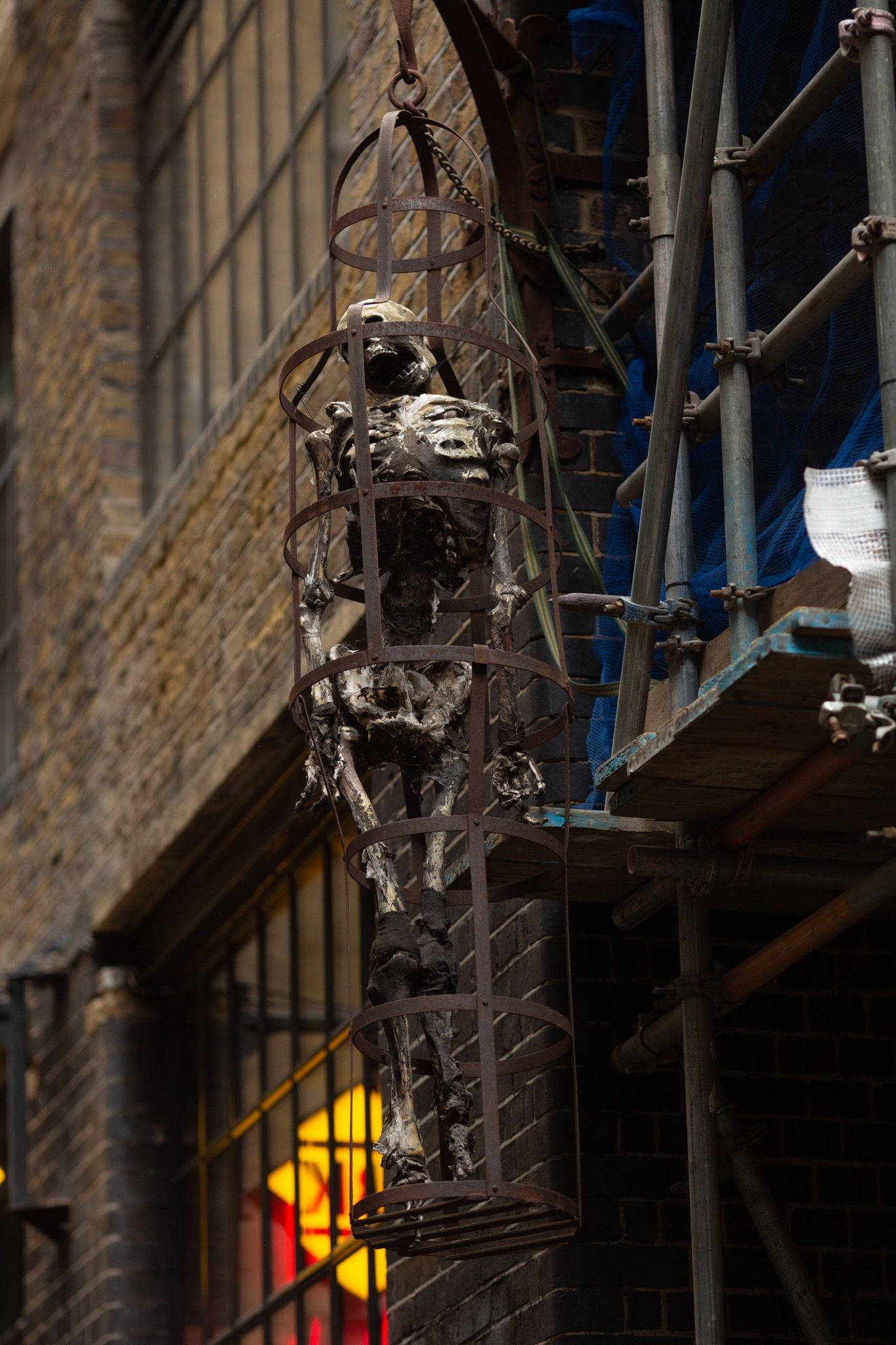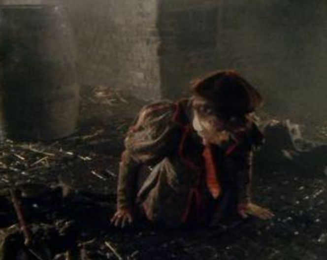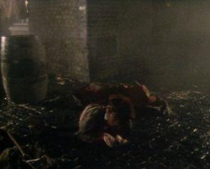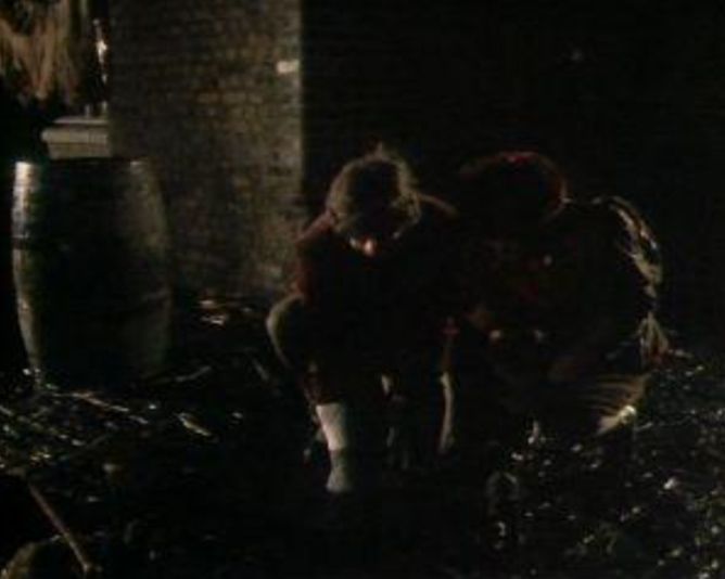 The alleyway next to the Clink is seen (as well as the "Clink Wharf" signage) the Doctor and Leela come into a spot of bother on the streets of London.