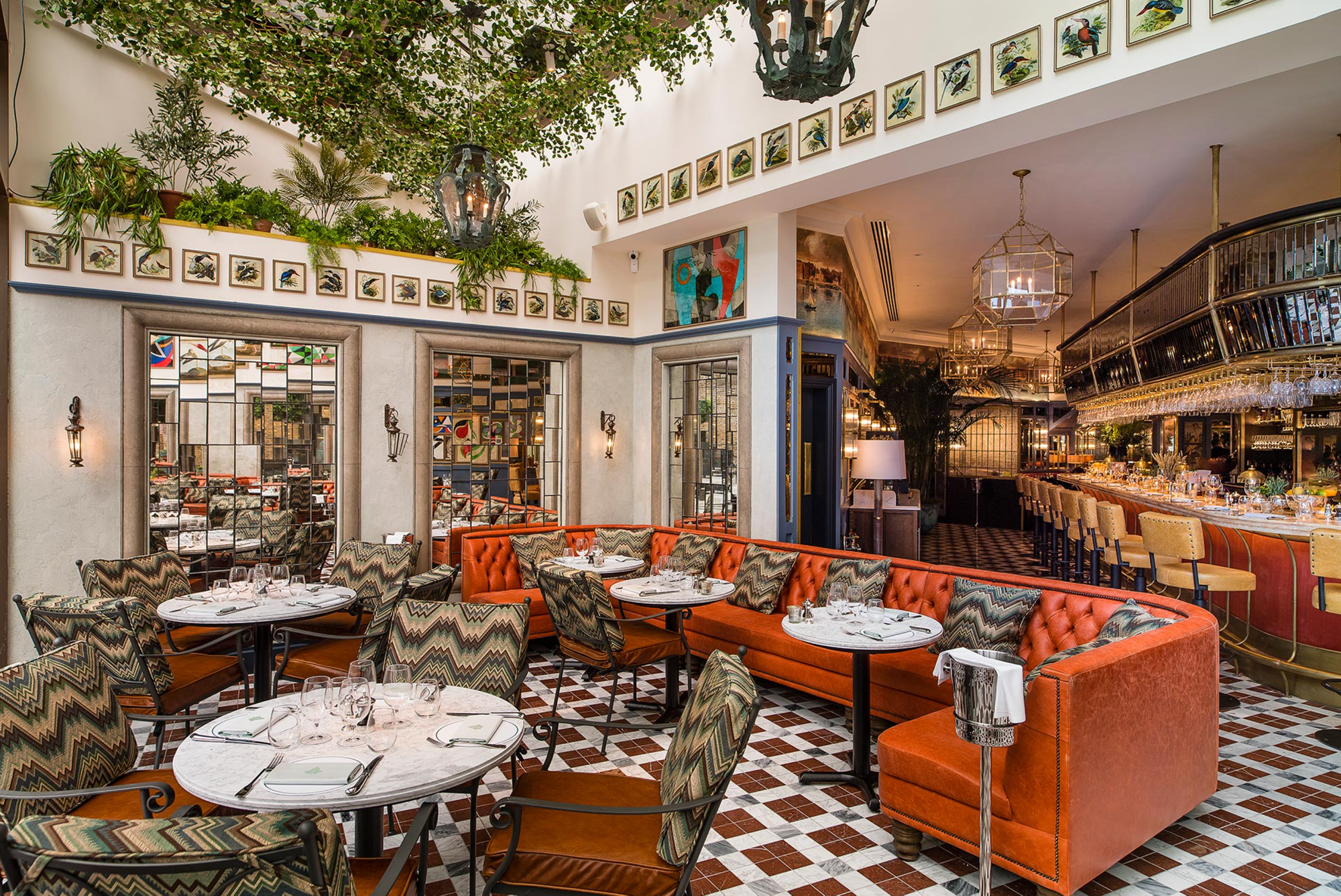 (Left) The Ivy overlooking Potters Fields Park and Tower Bridge (Right) The Ivy's interior decor.