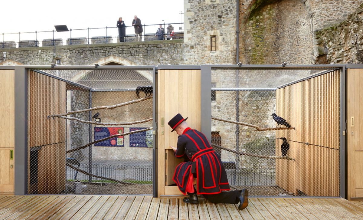 (L) Raven guarding The Tower of London (R) Raven enclosure close to Wall of the Innermost Tower (9)