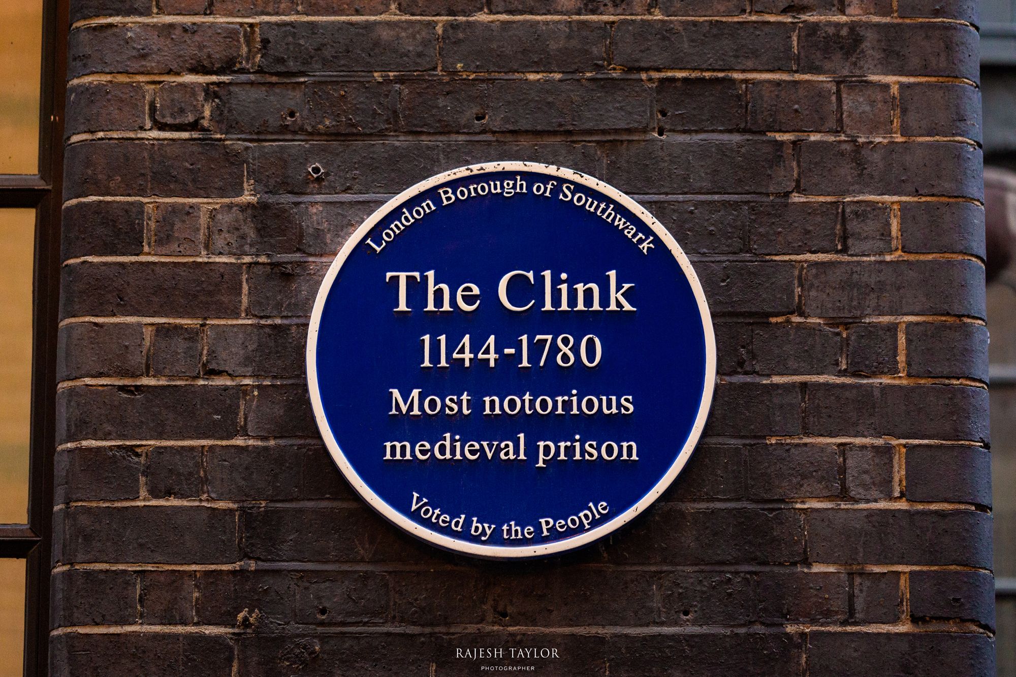 The Clink was a prison in Southwark which operated from the 12th century until 1780. The prison's name is said to be derived from the sound of striking metal (clinking) as the prison doors bolted.
