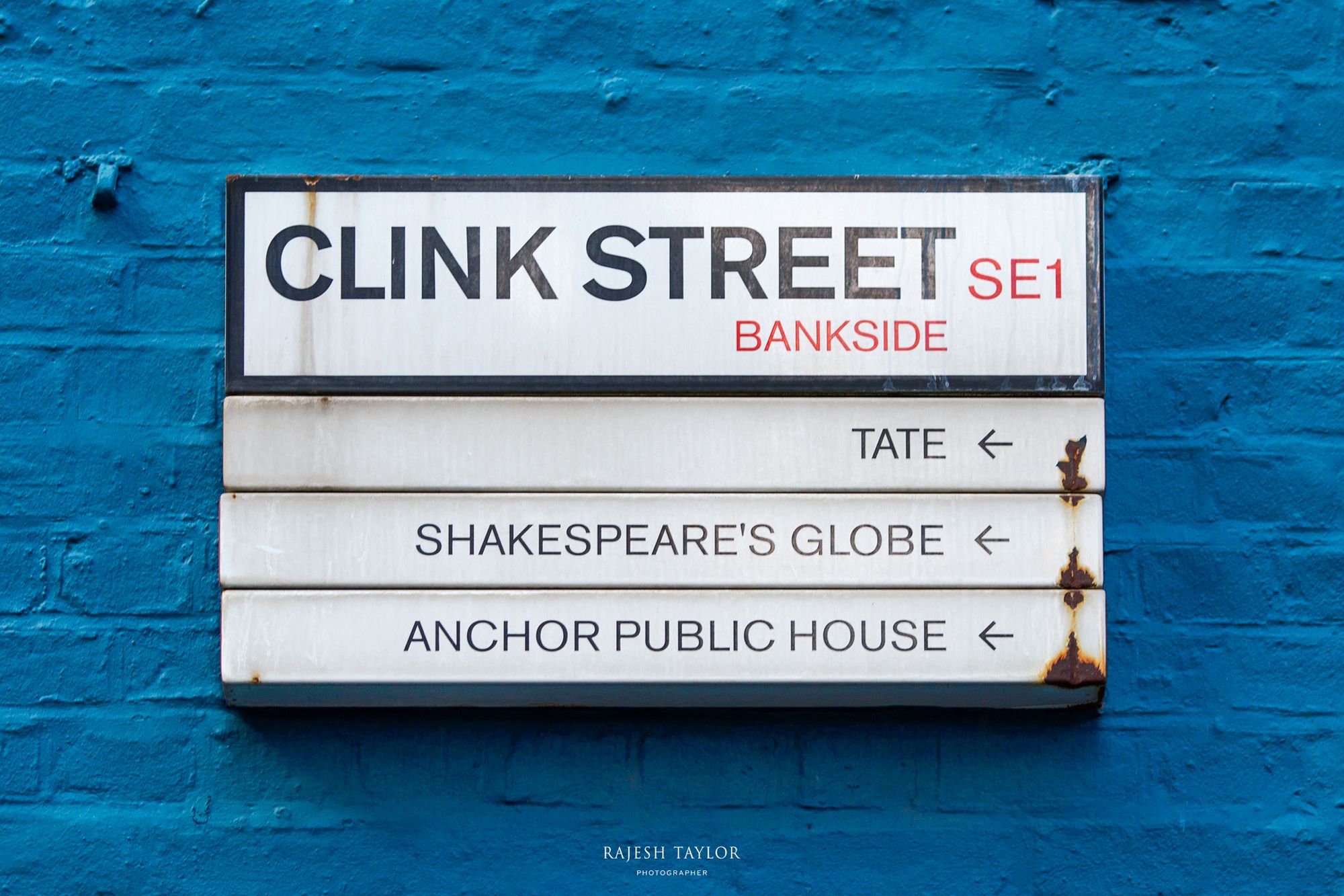The blue house on the junction of Stoney and Clink Street is still, vividly, there from 1976. It was here the TARDIS materialised on a foggy night in the first episode of the Talons story series. The sign points to the direction of Shakespeare's Globe which will lead on to The Clink Prison and The Millenium Bridge.
