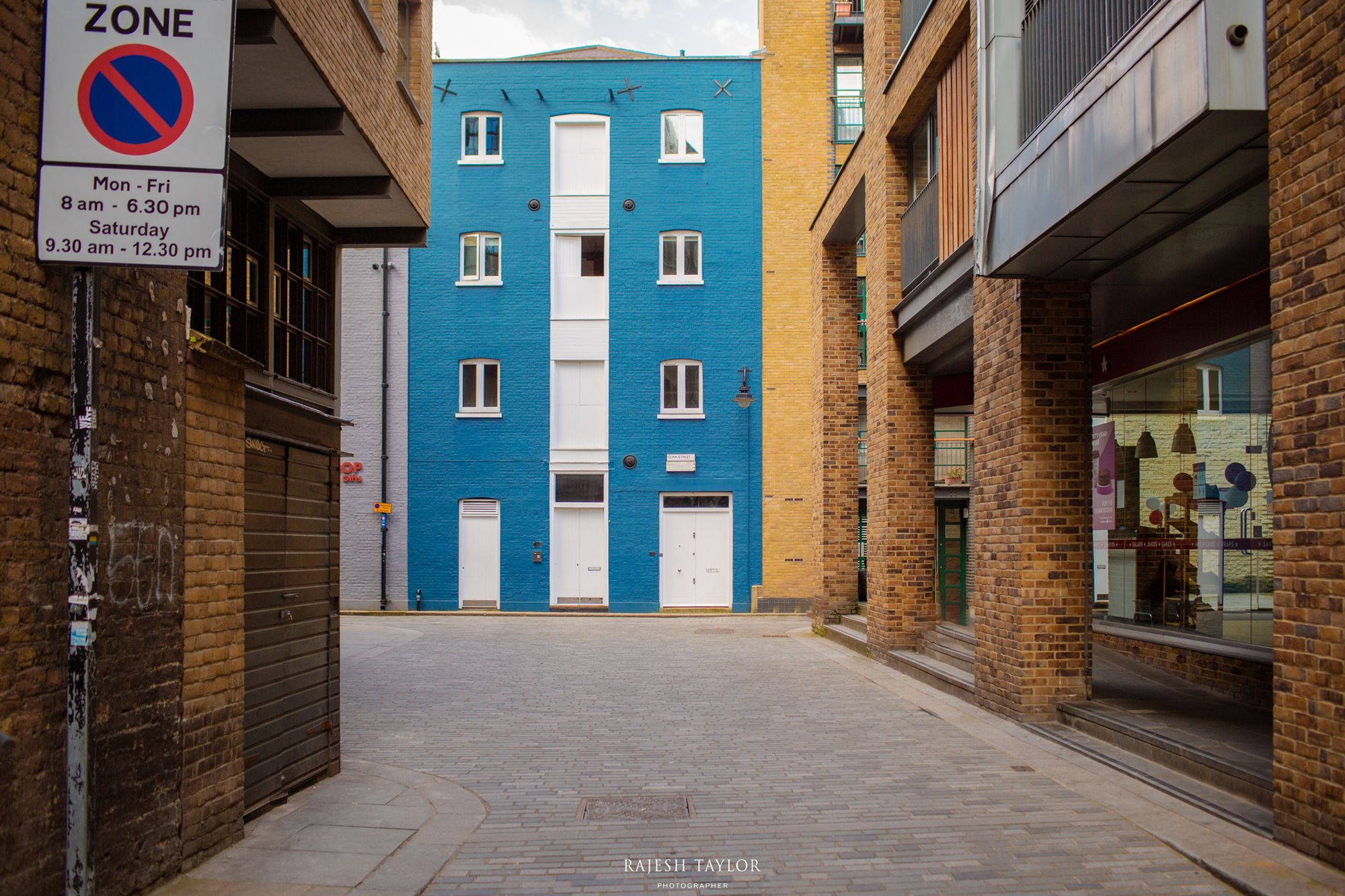 (Left) Effects of social distancing? (Right) Clink Blue Badge on Clink Street, Southwark © Rajesh Taylor