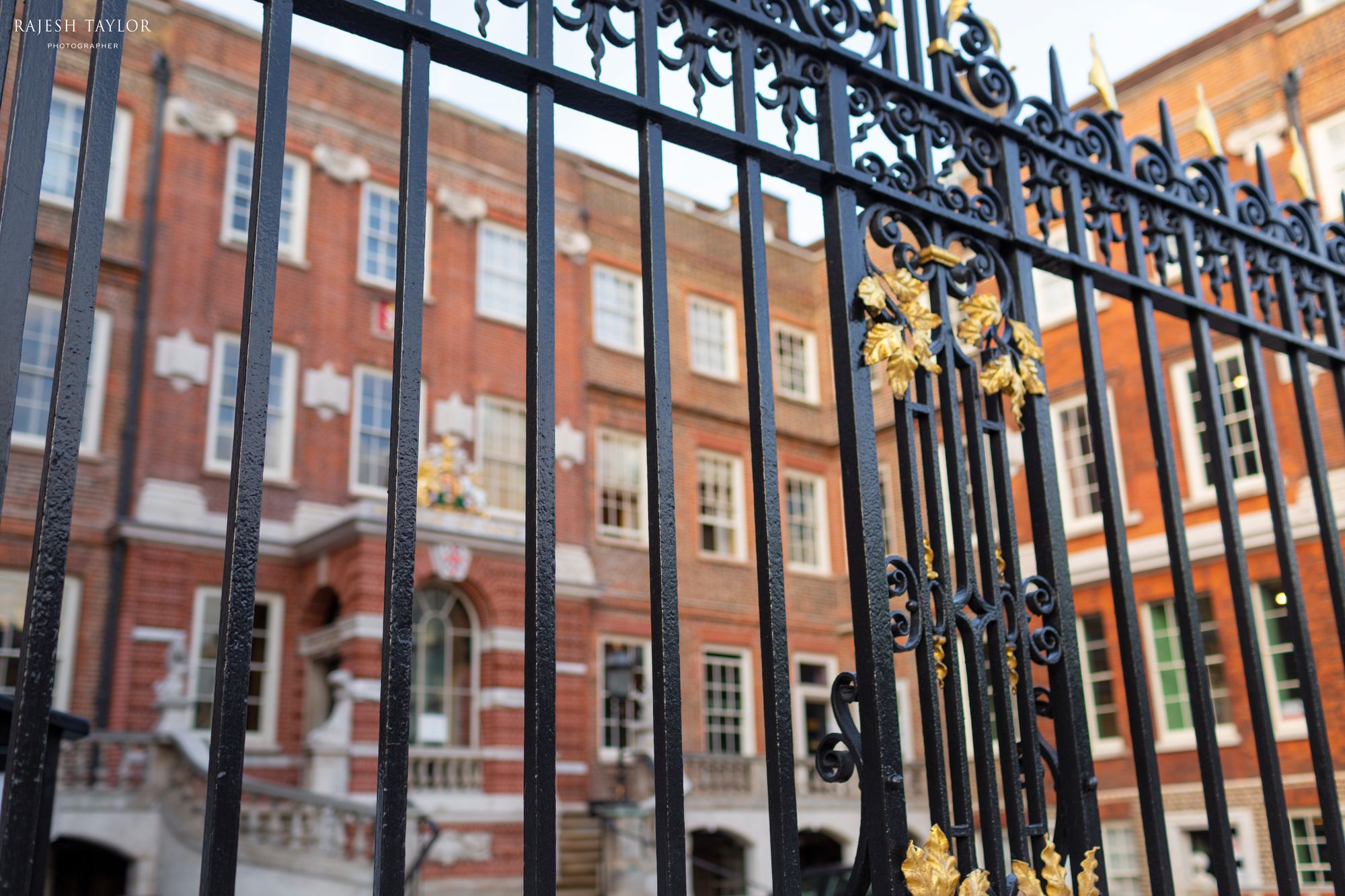 (L) Cleaner outside College of Arms Gate notices control signal: BBC (R) Collage of Arms front gates © Rajesh Taylor