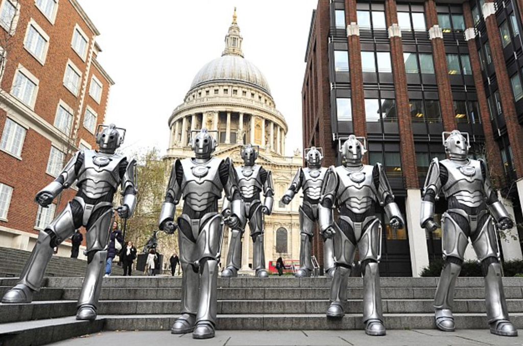 (L) Invasion filmed in 1968 (R) Return of the Cyberman Promotion in 2010