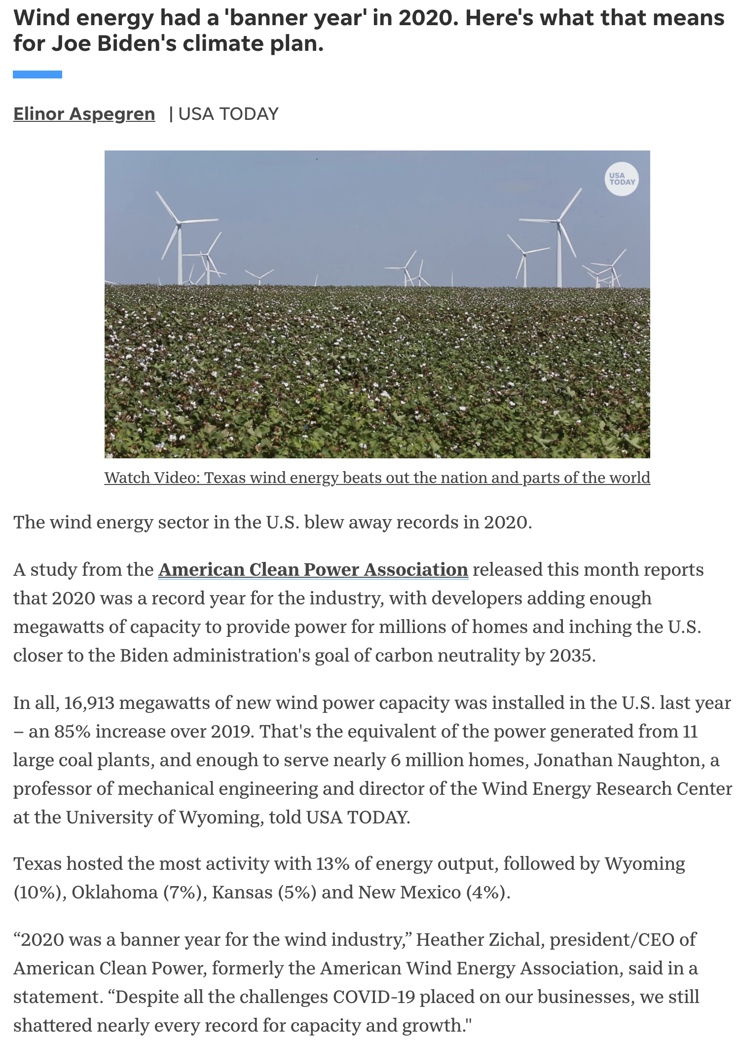 In 2020, there was a concerted effort in legacy and mainstream pushing wind turbine investments, celebrating wind energy being able to serve 6 million new homes in the previous 12 months alone with the turbine expansion.